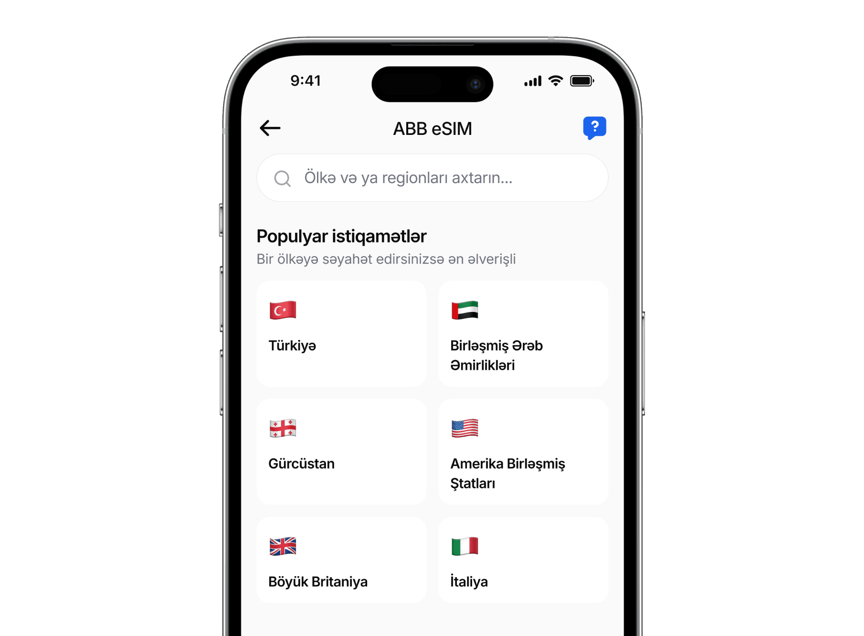 ABB-eSIM-i tətbiqdən bir neçə kliklə alın və fiziki SIM karta ehtiyac olmadan dərhal istifadə etməyə başlayın.
