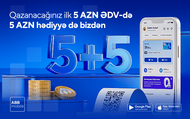 5 avqust – 5 sentyabr 2024-cü il tarixlərində ABB mobile-da qazandıran kampaniya var! Aktiv ABB məhsulu olmayan şəxslər ABB mobile yükləyib ƏDV Geri al kartını aktiv etdikdə qaytarılan 5 AZN üçün əlavə 5 AZN qazanacaqlar.