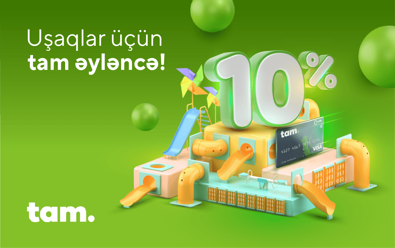 ABB, Uşaqların Beynəlxalq Müdafiəsi Günü münasibəti ilə uşaqları sevindirəcək kampaniyaya start verir. 30.05.2023 – 05.06.2023 tarixlərində Uşaq əyləncə mərkəzlərində istənilən növ TamKart taksit və ya debet kartı ilə edilən ödənişlərə görə müştərilər 10% keşbek qazanacaqlar. Kampaniyadan yararlanmaq üçün elə indi TamKart sifariş edin.