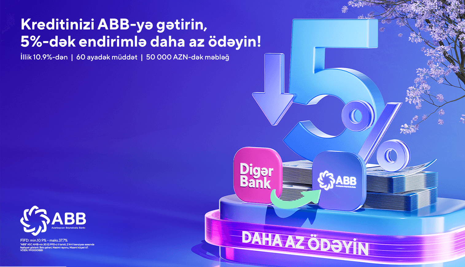 You can apply for a cash loan of up to 50,000 AZN on preferential terms fully online, without visiting a bank branch.
