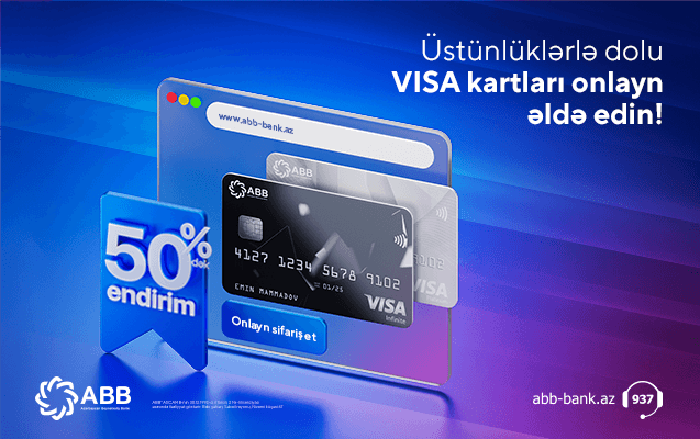 21 avqust - 20 sentyabr tarixlərində ABB-nin VISA Infinite PayWave və VISA Platinium PayWave kartların onlayn sifarişlərdə 50%-dək endirimlə əldə edə bilərsiniz!