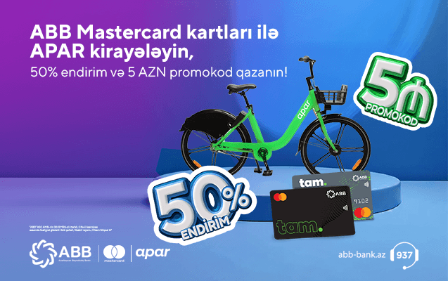 From September 20 to December 31, ABB is launching a special campaign with the APAR bike rental service in honor of World Car-Free Day, celebrated on September 22. The campaign is targeted at young people aged 18 to 29. As part of the campaign, clients who subscribe to the Bike365 package in the APAR bike rental mobile app using ABB Mastercard cards will receive an exclusive promo code for 5 AZN. Additionally, there is a 50% discount on the Bike30 and Bike365 packages for everyone.