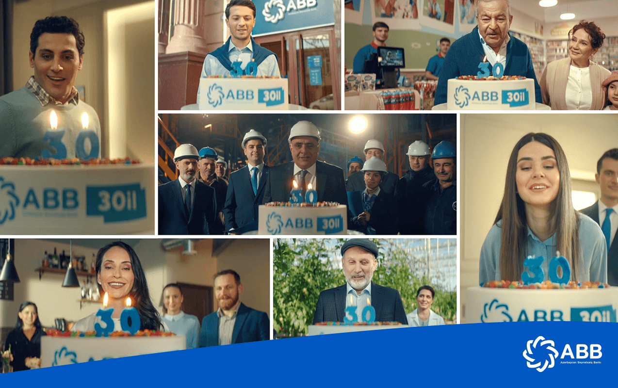 ABB tərəfdaşlarını, müştərilərini 30 illik yubiley tortu ətrafında bir araya gətirir. Uzun illər ərzində bu Bankla birgə irəlilədiklərinə görə onların hər birinə təşəkkürünü yetirir. İmic filmi ilə buradan tanış ola bilərsiniz.