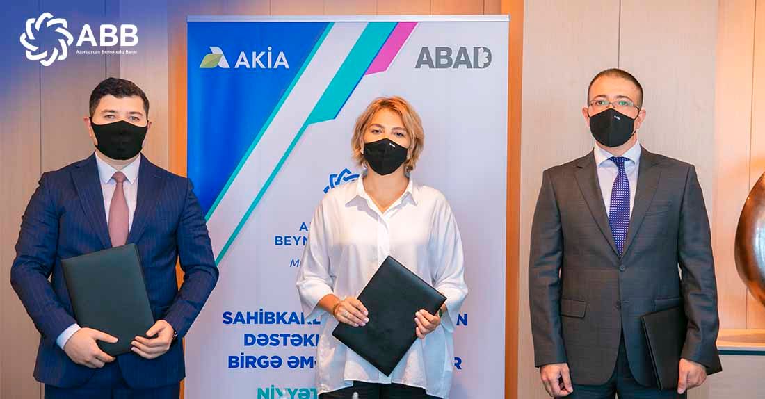 Azərbaycan  Beynəlxalq Bankı, “ABAD” publik hüquqi şəxs və Aqrar Kredit və İnkişaf Agentliyi (AKİA) arasında Niyyət Protokolu imzalanıb. Protokol sahibkarlığın inkişafının dəstəklənməsi üzrə birgə əməkdaşlığı nəzərdə tutur. Bu çərçivədə sahibkarlıq subyektlərinə öz investisiya layihələrini reallaşdırmaqdan ötrü üçtərəfli kömək göstəriləcək.