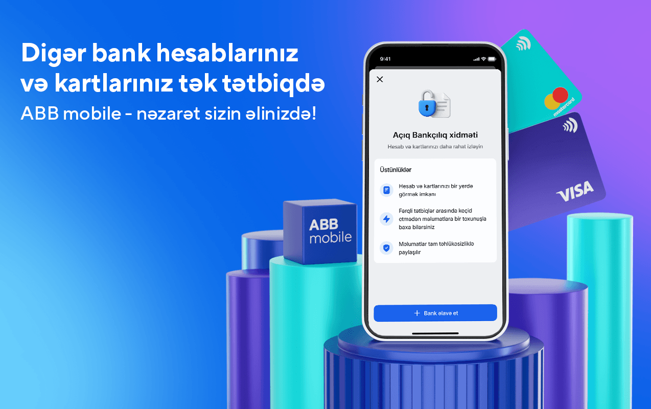 ABB mobile tətbiqi ilə bankçılıqda yeni dövr başlanıb. Açıq bankçılığa qoşulmuş digər bankların müştəriləri də artıq öz hesablarını və kartlarını ABB mobile-da izləmək imkanı əldə ediblər. Bu, müştərilərə daha rahat, mərkəzləşdirilmiş və asanlıqla nəzarət edilə bilən bankçılıq təcrübəsi yaradır.