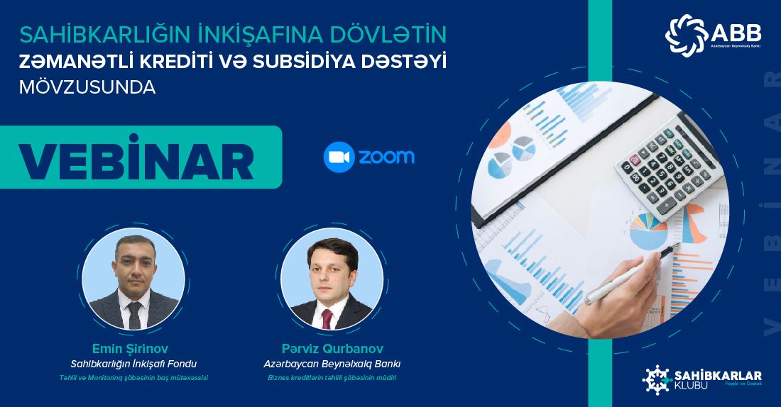 Bu kreditlərdən istifadə qaydalarının sahibkarlara ətraflı izahı üçün avqustun 7-də, ABB-nin Sahibkarlar Klubunun üzvləri üçün vebinar keçirilib. Vebinarda Bankın və Sahibkarlığın İnkişafı Fondunun nümayəndələri bununla bağlı sahibkarları maraqlandıran məqamlara aydınlıq gətiriblər.