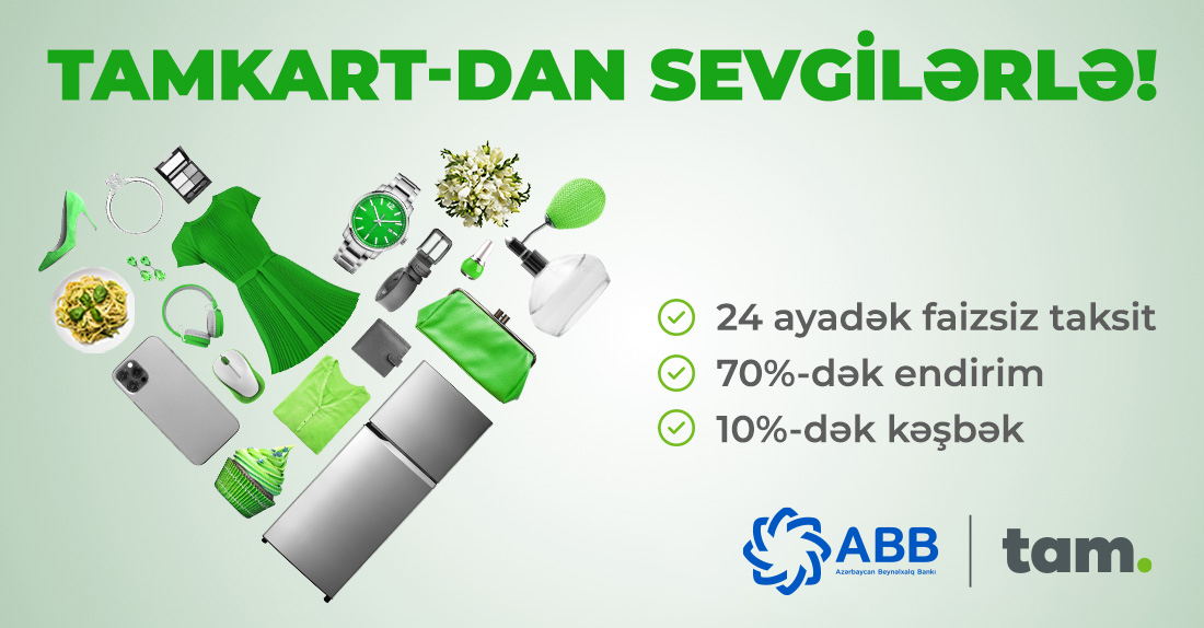 Azərbaycan Beynəlxalq Bankı TamKart və Bankın bütün kart sahibləri üçün yeni kampaniyaya start verib. 12, 13, 14 fevral tarixlərində baş tutacaq kampaniya müddətində Bankla tərəfdaş alış-veriş mərkəzlərində Azərbaycan Beynəlxalq Bankının kartları ilə ödəniş zamanı müştərilərə yerində 70%-ə qədər endirim və eyni anda 10%-ə qədər əlavə kəşbək veriləcək. TamKartlılar isə məhsul və xidmətləri 24 aya qədər taksitlə əldə edə biləcəklər.