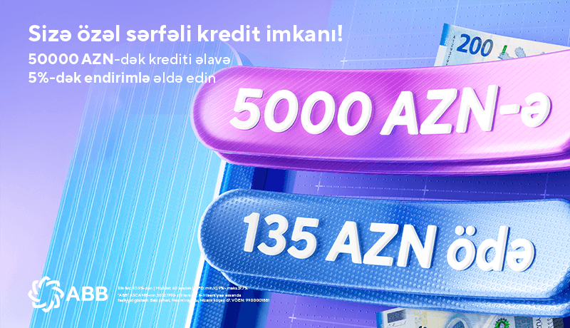 04.02.2026 – 03.03.2026 tarixlərində ABB-dən nağd krediti 5%-dək endirimlə əldə edə bilərsiniz.