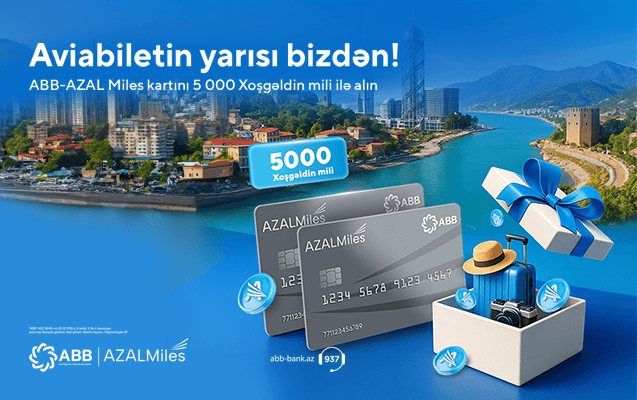 18-20 iyul 2025-ci il tarixlərində (hər iki tarix daxil olmaqla) ABB-AZAL Miles kartını əldə edən hər kəsə 2 000 deyil, 5 000 Xoşgəldin mili təqdim olunur. Xatırladaq ki, 5 000 mil AZAL ilə müxtəlif istiqamətlərə olan aviabilet qiymətlərinin yarısı deməkdir.