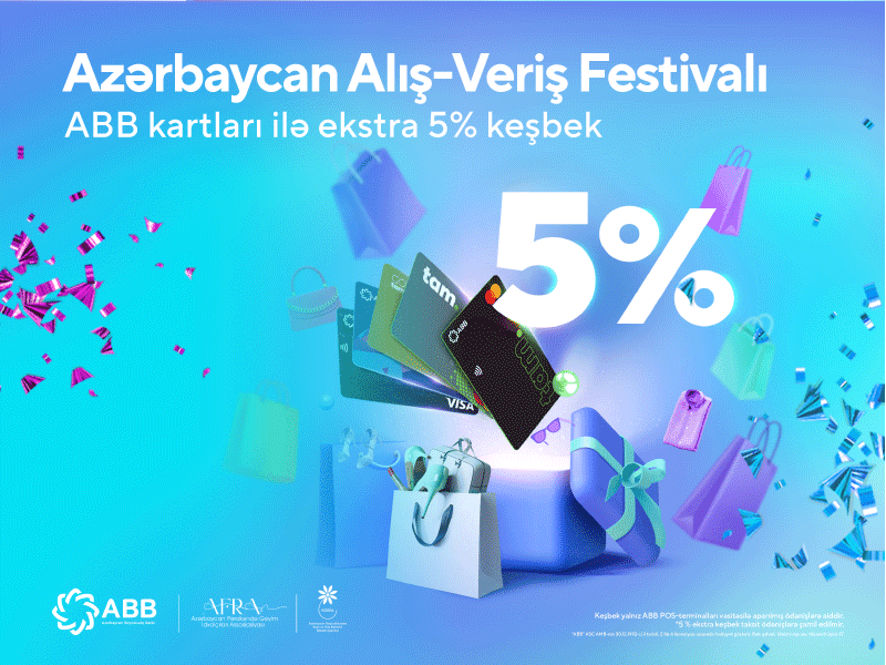 - 12 mayadək ABB kartları ilə edilən ödənişlərdə 5% əlavə keşbek hesablanacaq.