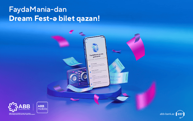 25 iyun-08 iyul 2025 tarixləri arasında ABB kartları ilə nağdsız ödənişlər edin və Dream Fest musiqi festivalına bilet qazanın. Bu, sənin festivalda iştirak etməyin üçün əla fürsətdir!
