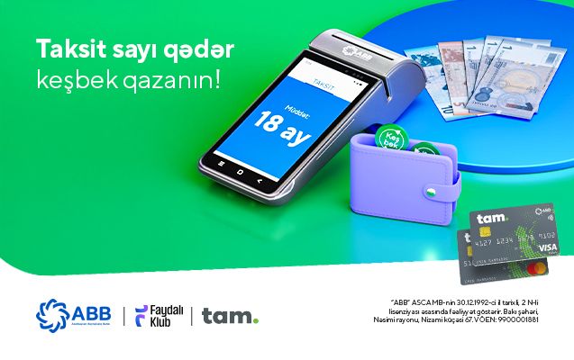 - Birdəfəlik ödənişlər kampaniyaya daxil deyil. Yalnız taksitə bölünmüş əməliyyatlar keşbek qazandırır.
