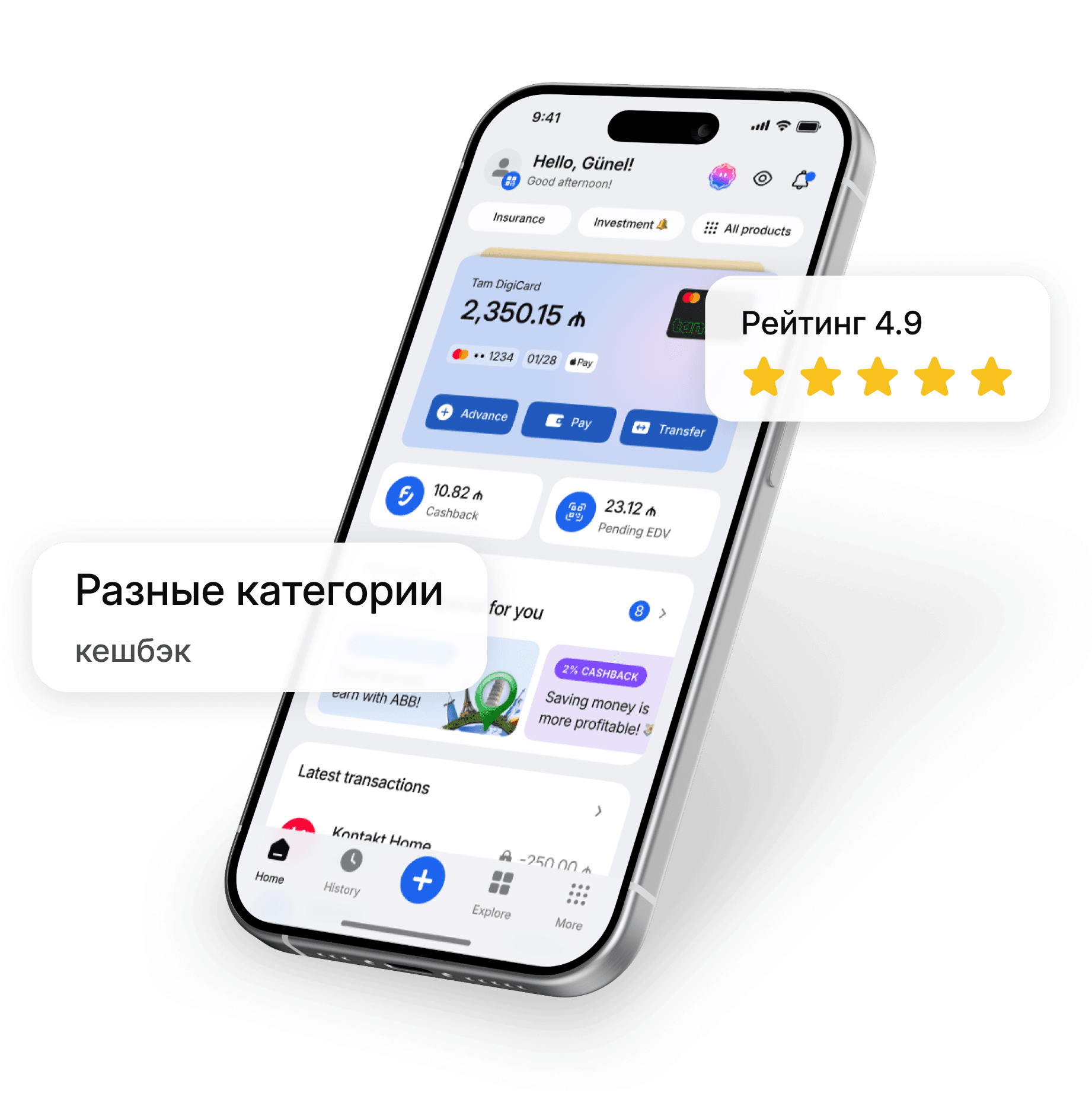 *Начисляется на остаток по дебетовой части карты, зарегистрированной в ABB Mobile, и переводится на карточный счёт в конце месяца.
