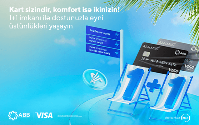 С 1 июня по 31 августа 2025 года держатели карт ABB-AZAL Miles могут воспользоваться кампанией «1+1». В рамках кампании предоставляется бесплатный доступ для владельца карты и одного сопровождающего в международные Fast Track и Lounge зоны, а также на территорию комплекса Sea Breeze.