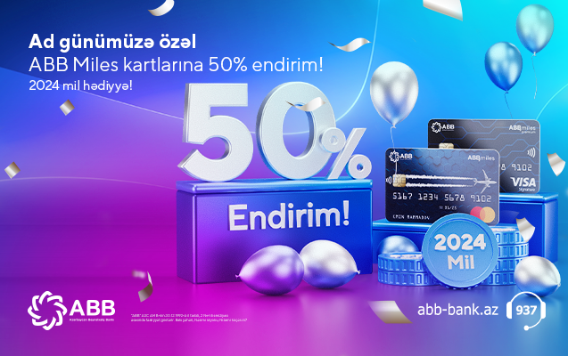 - Во время проведения кампании карты ABB Miles VISA, ABB Miles MasterCard, ABB Miles VISA Premium и ABB Miles MasterCard Premium будут продаваться со скидкой 50%.