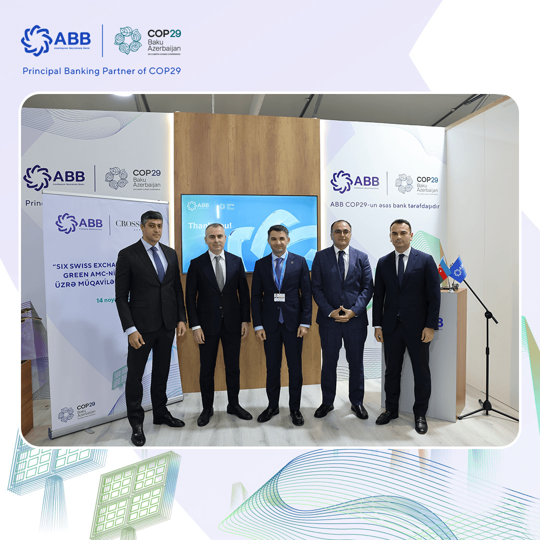Банк АВВ и швейцарская группа компаний Crossinvest подписали соглашение в рамках COP29. Документ предусматривает сотрудничество по размещению Зеленого Активно Управляемого Сертификата (Green AMC) на Швейцарской фондовой бирже (SIX Swiss Exchange).