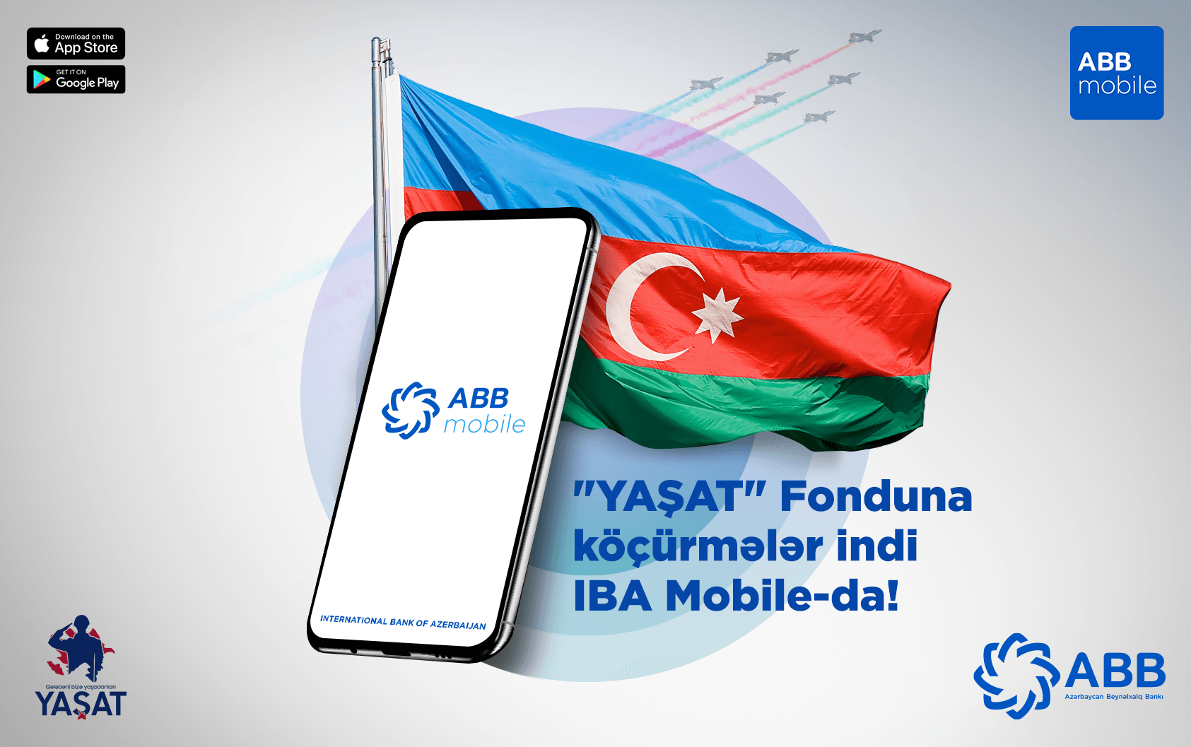 Переводы в Фонд «YAŞAT», направленного на поддержку семей раненых и шехидов, теперь можно осуществить при помощи мобильного приложения ABB IBA Mobile. Для этого достаточно открыть приложение на вашем мобильном телефоне и перейти в раздел Фонд YAŞAT, а затем в «Платежи». В данном приложении юридические лица могут легко перечислить средства по ИНН-номеру, а физические лица могут сделать перевод всего за пару минут при помощи FİN-кода удостоврения личности.