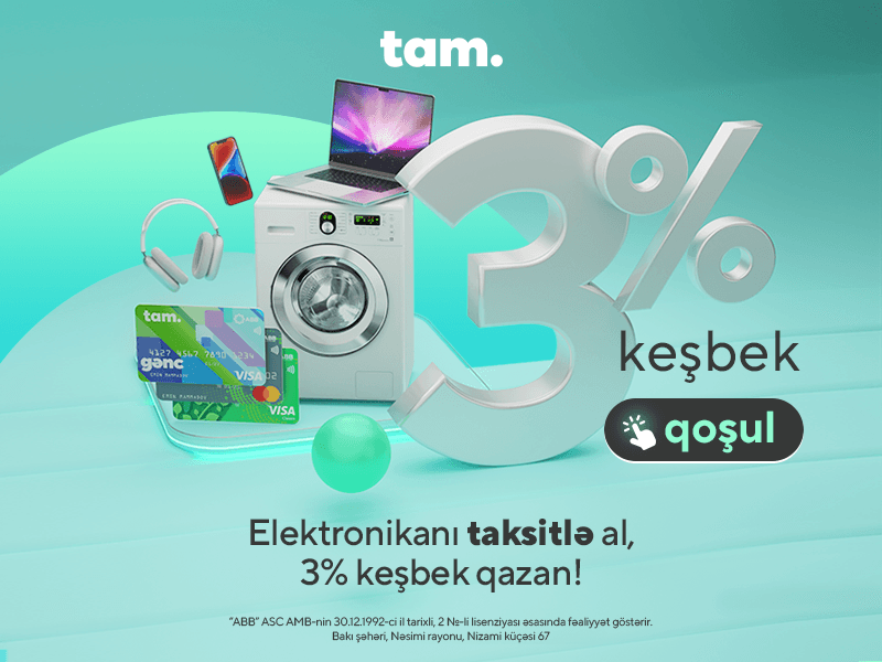 📅 30.10.2023 - 20.11.2023 (qeyd olunan tarixlər daxil) tarixlərində TamKart-la elektronika mağazalarında alış-verişinizi taksitlə edin, tam 3% keşbek qazanın!🌟